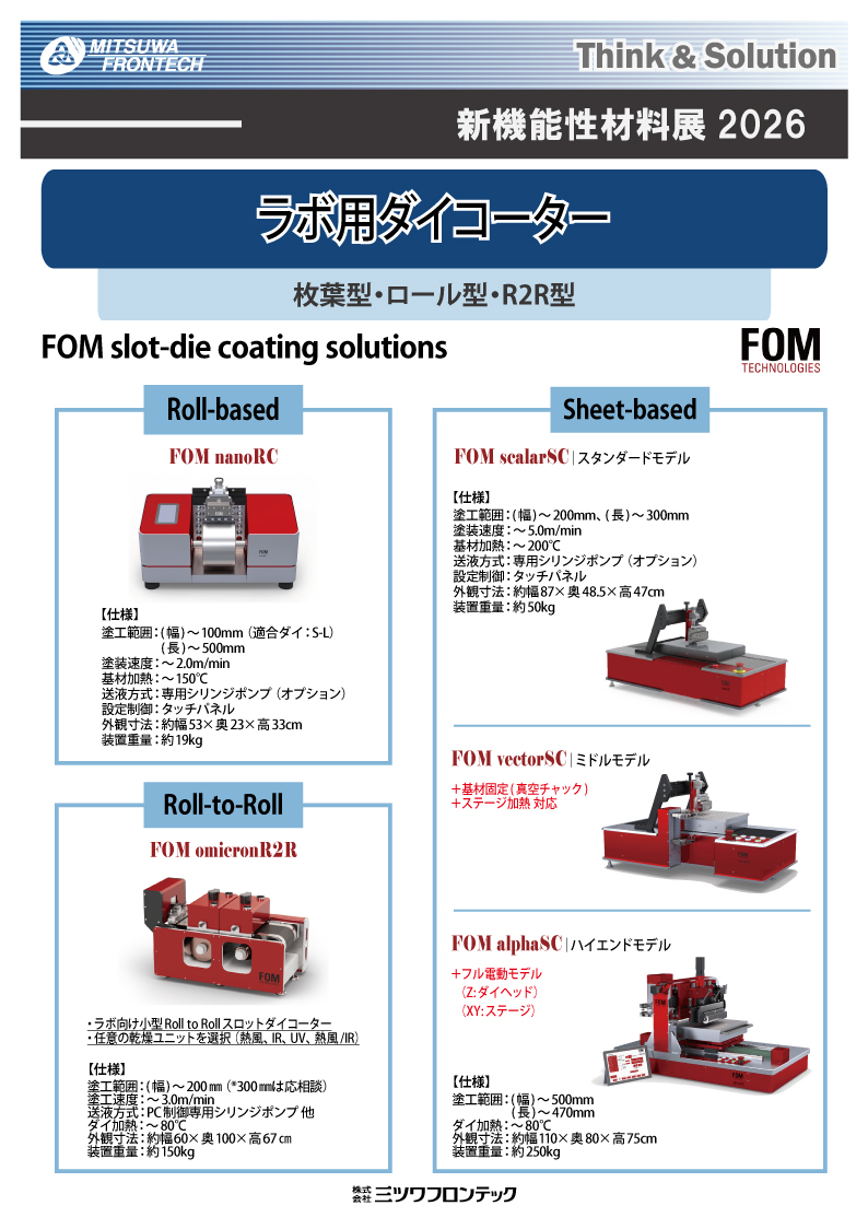 閲覧数:21枚葉型・ロール型・R2R型の3種類のダイコーターをご紹介します。