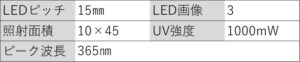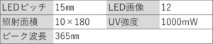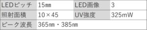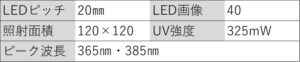 ●ロッドレンズ装着・・・LED上にロッドレンズを装着することにより集光し、UV強度をUPします。照射エリアのコントロールも可能です。